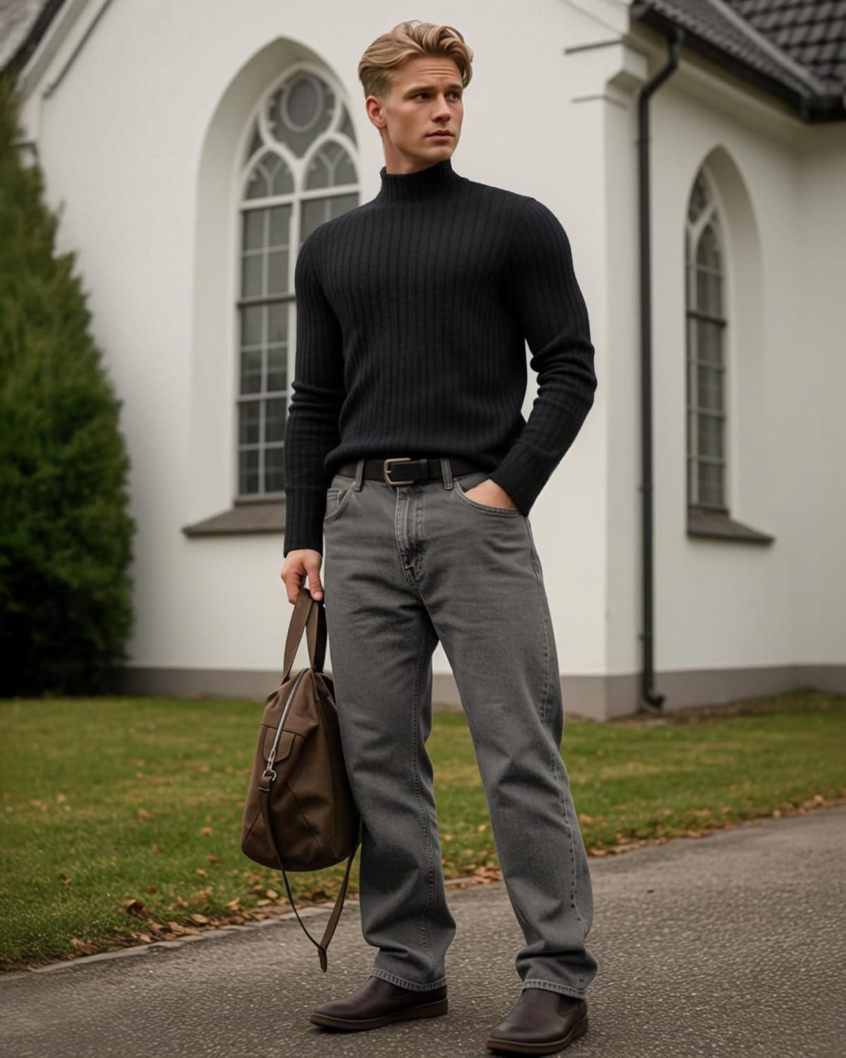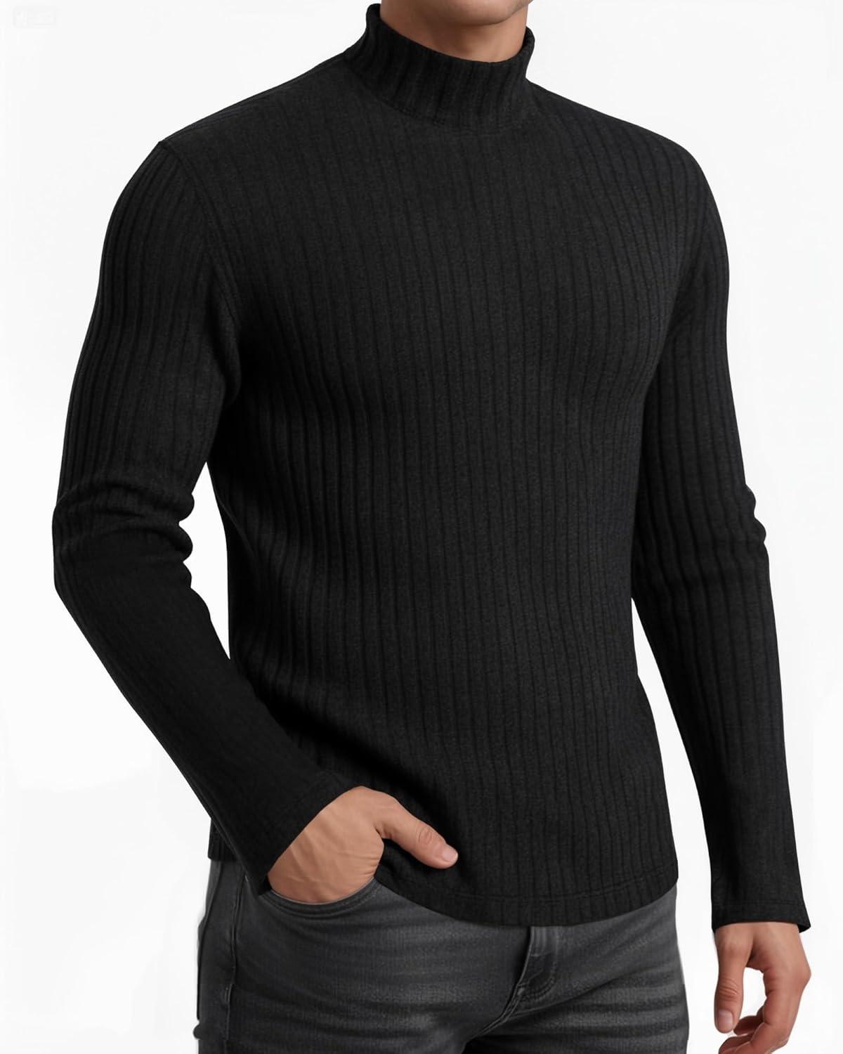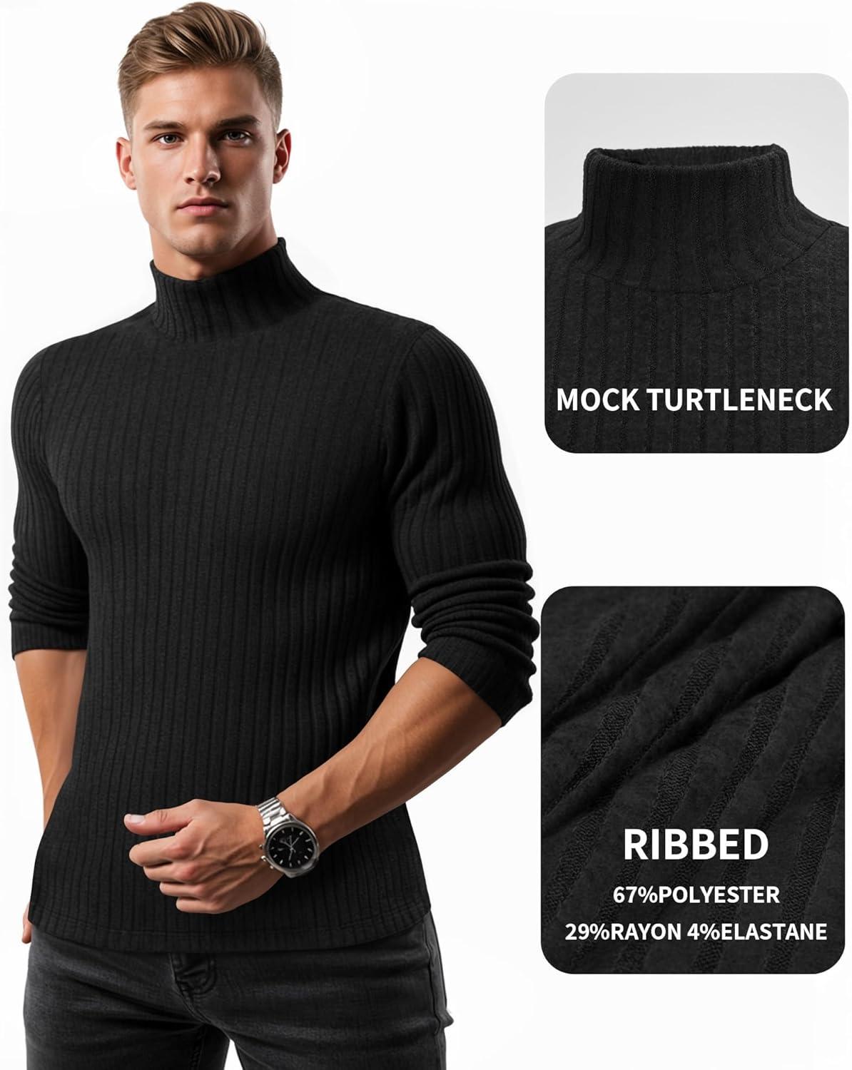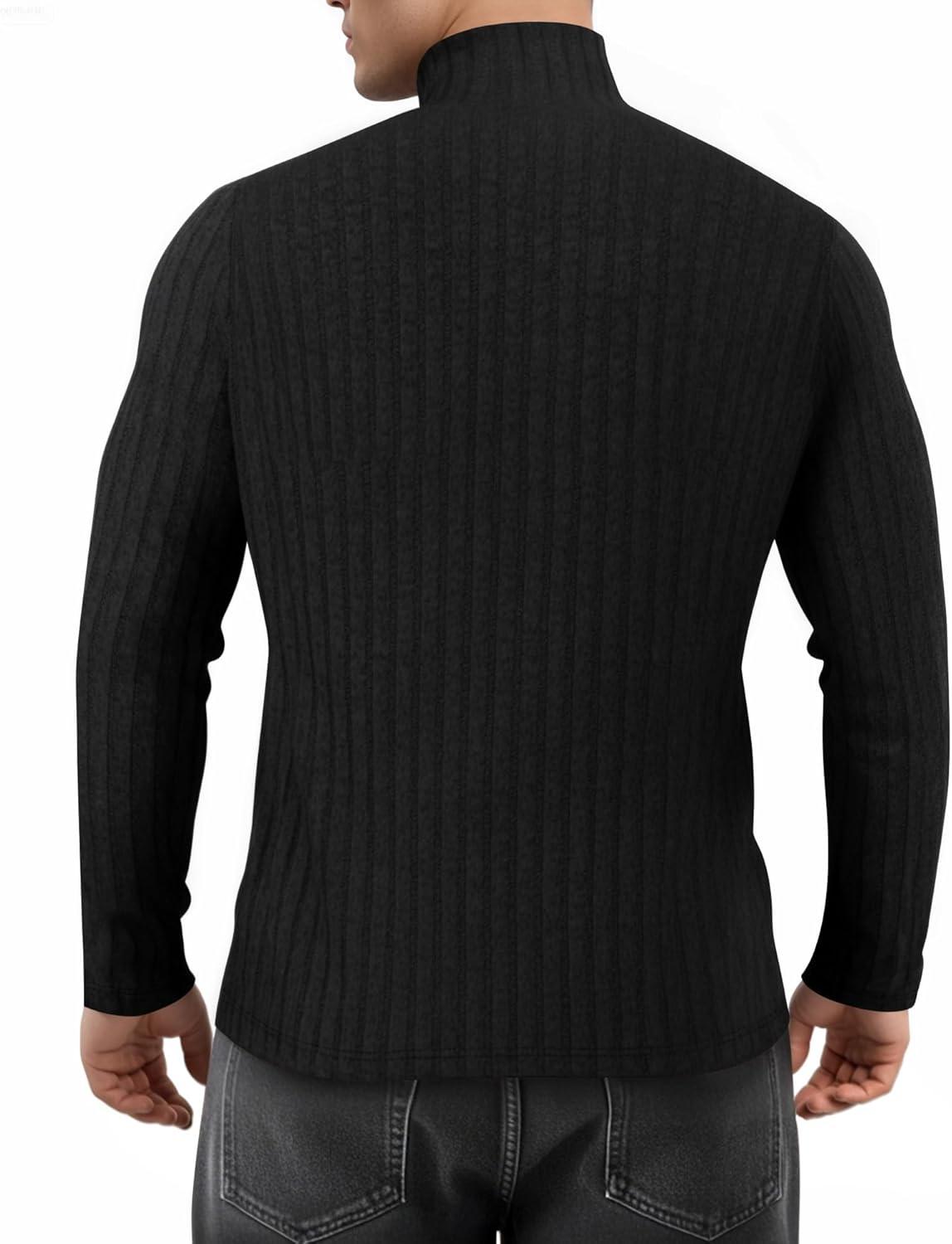 MANGOPOP Men's Mock Turtleneck Long Sleeve Shirts Fleece Ribbed Knit Pullover Sweater Basic Thermal Undershirt Tops 2025(A-black)