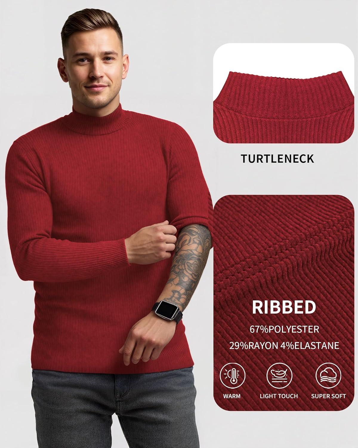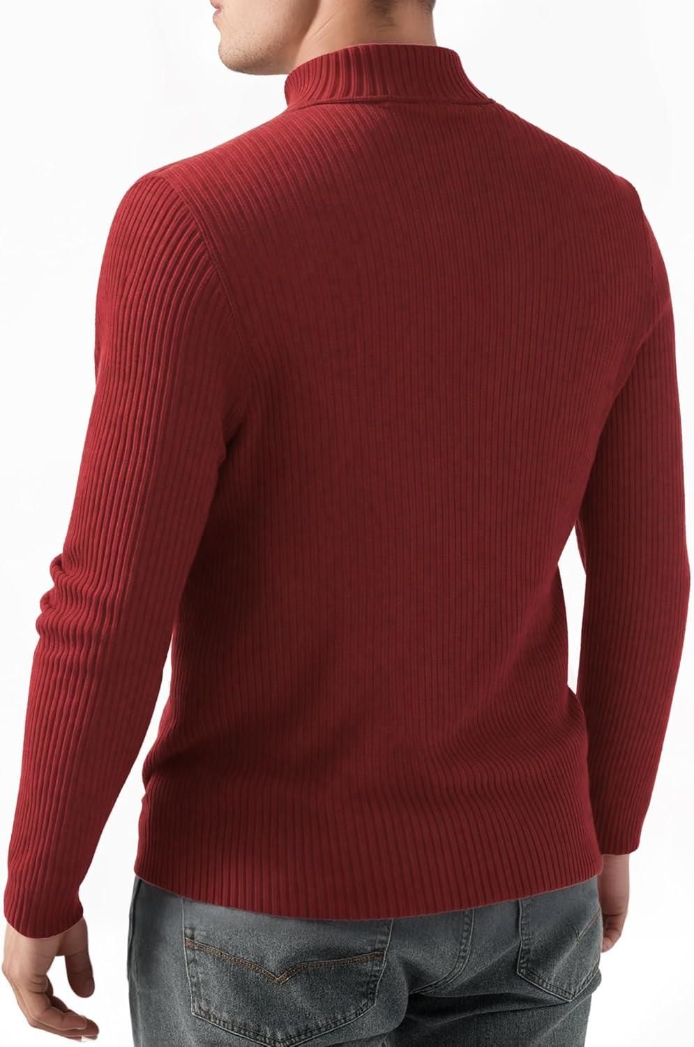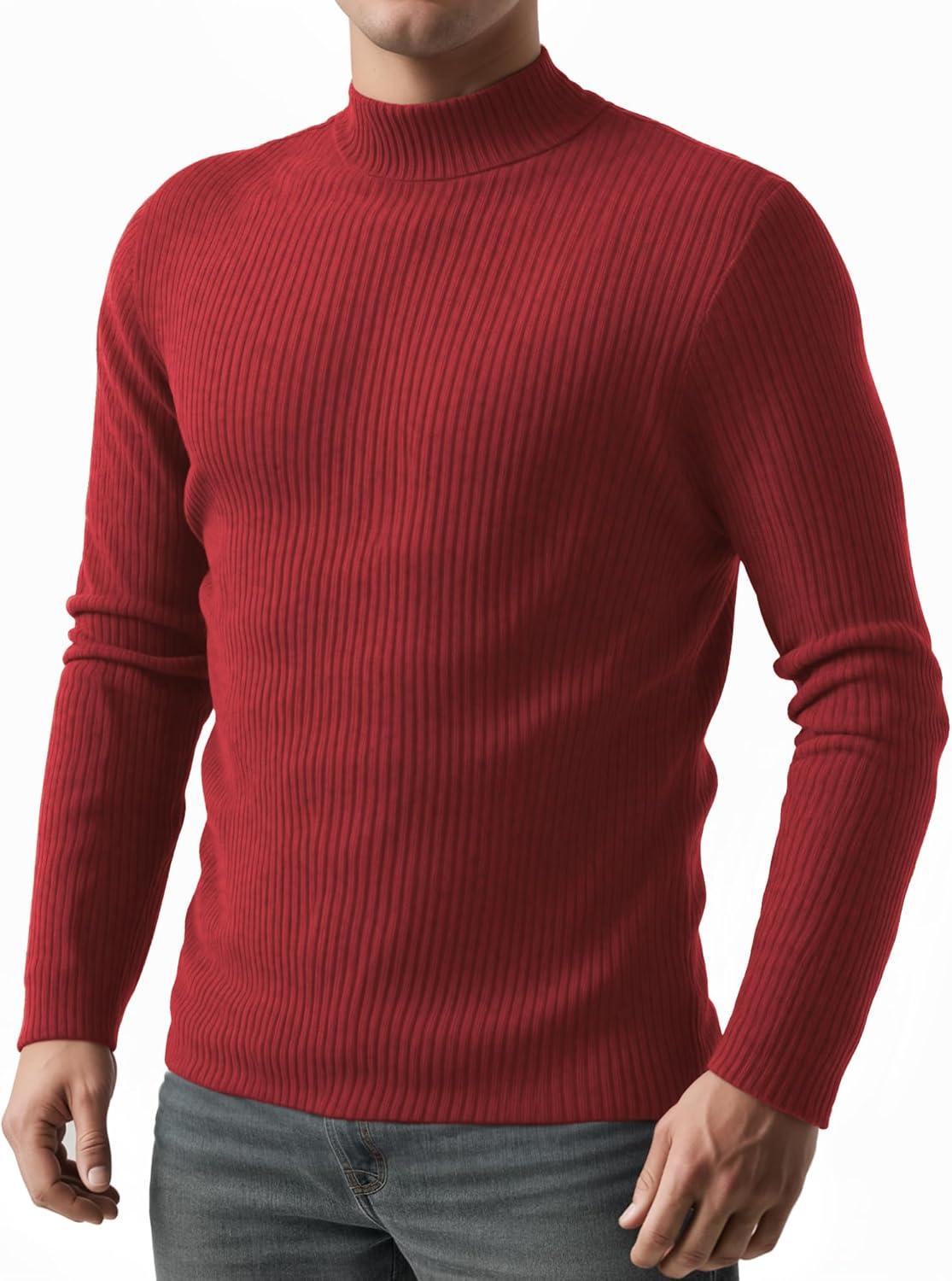 MANGOPOP Men’s Mock Turtleneck Shirts Long Sleeve Shirts Pullover Ribbed Sweater Fall Fashion 2025(A05 Red)