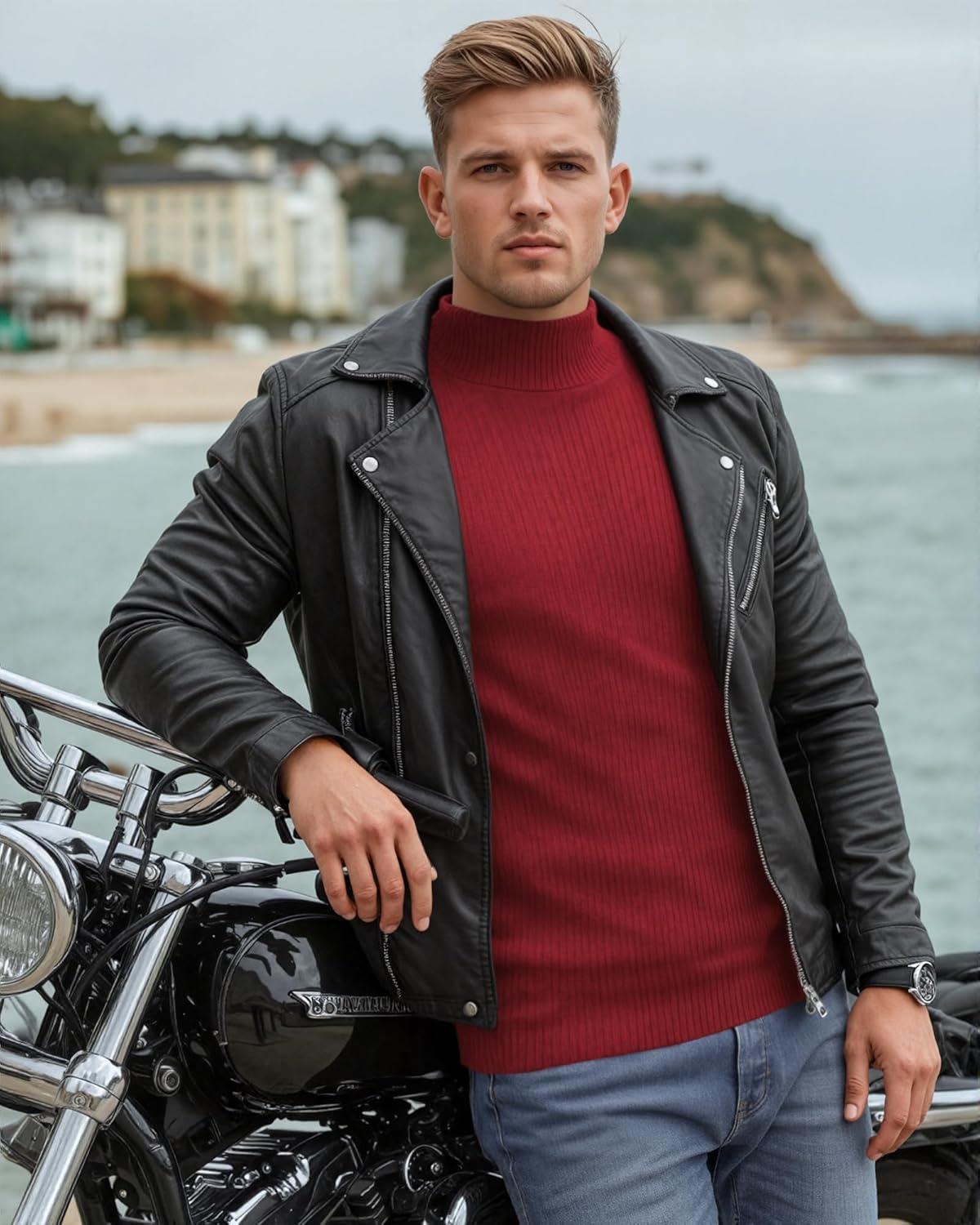 Be the first to review “MANGOPOP Men’s Mock Turtleneck Shirts Long Sleeve Shirts Pullover Ribbed Sweater Fall Fashion 2025(A05 Red)”