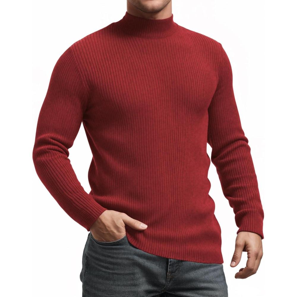 MANGOPOP Men's Mock Turtleneck Shirts Long Sleeve Shirts Pullover Ribbed Sweater Fall Fashion 2025(A05 Red)