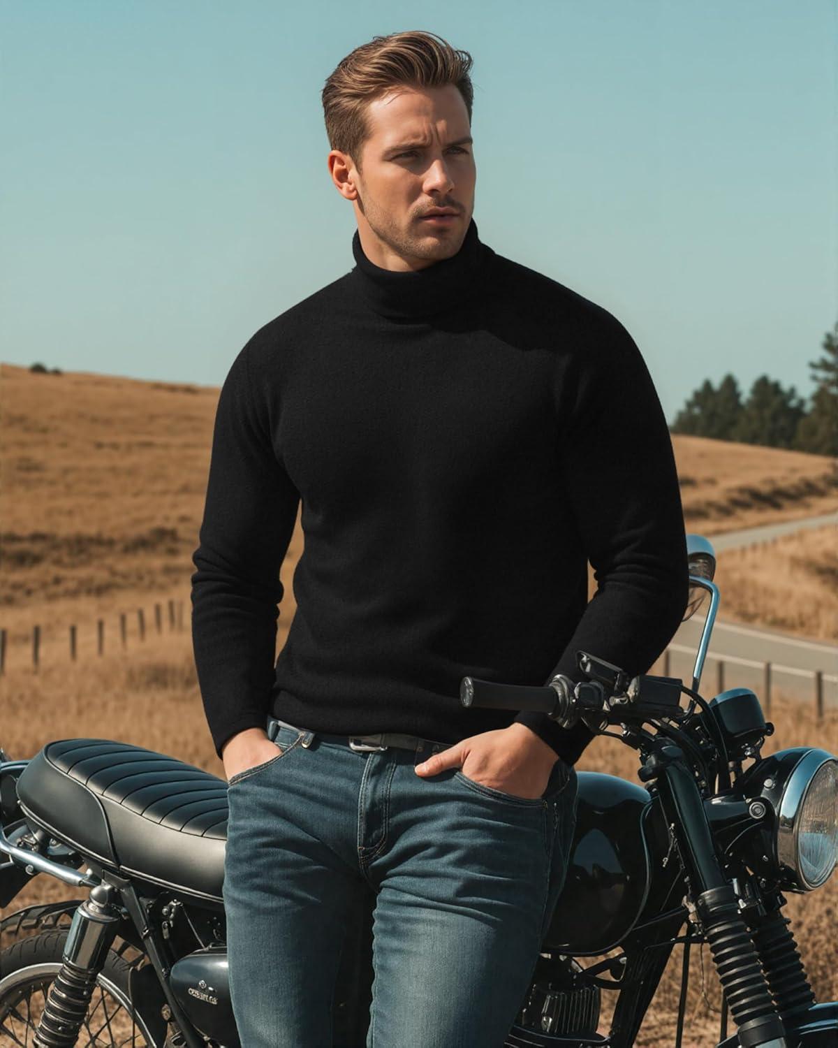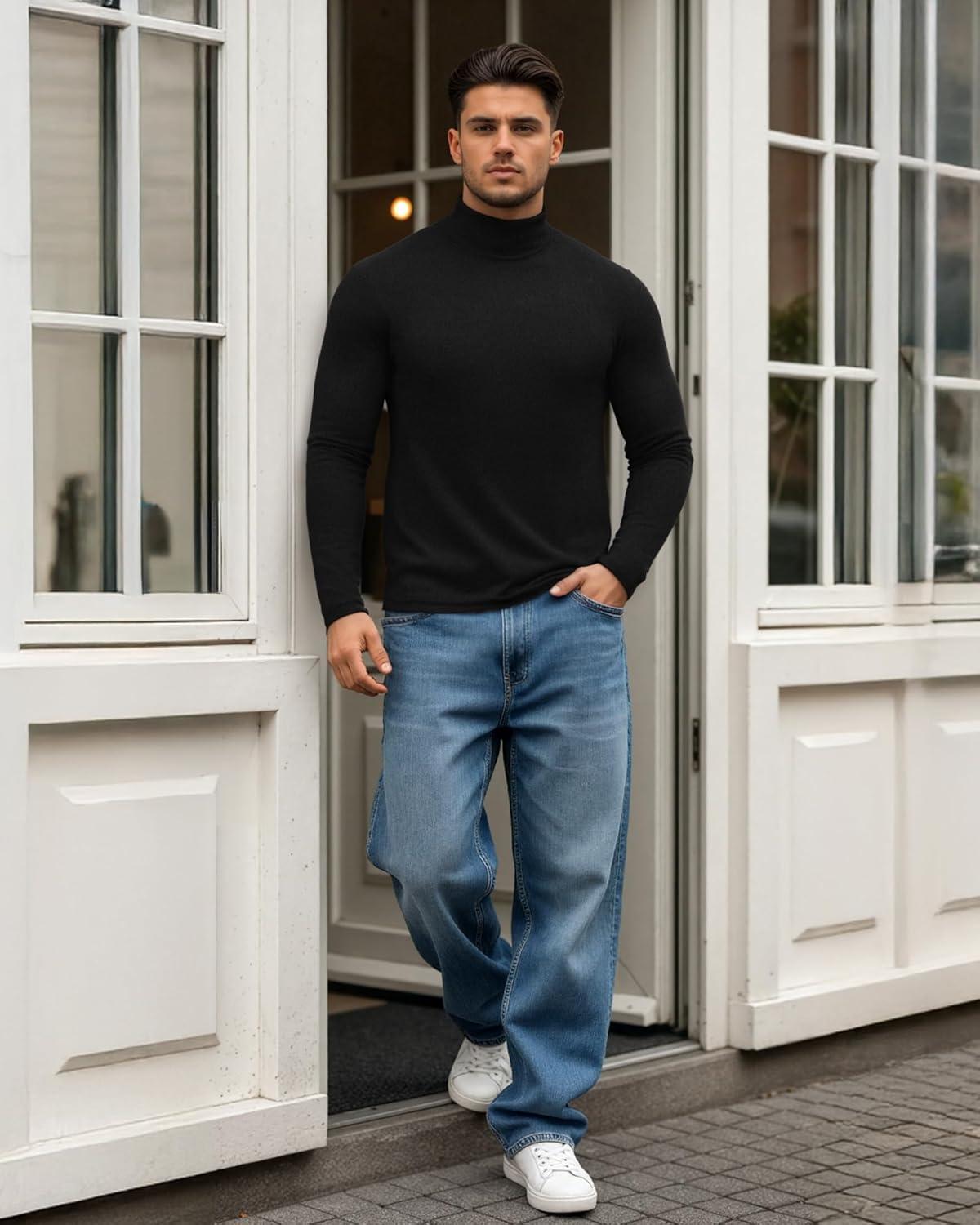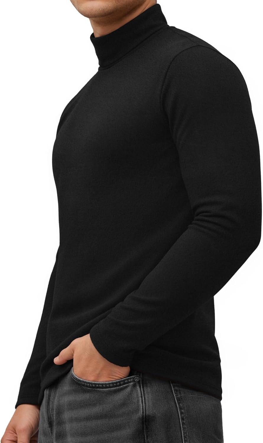 MANGOPOP Men's Turtleneck Long Sleeve Shirts Thermal Undershirt Relaxed Fit Fleece Tops Fall Winter Fashion 2025(Black)