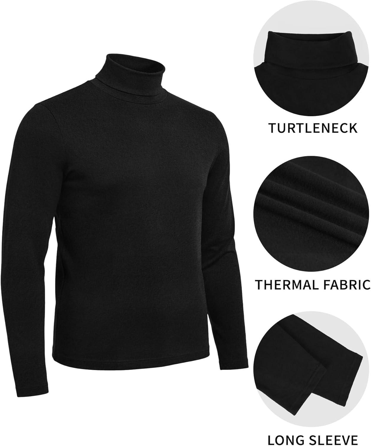 MANGOPOP Men’s Turtleneck Long Sleeve Shirts Thermal Undershirt Relaxed Fit Fleece Tops Fall Winter Fashion 2025(Black)
