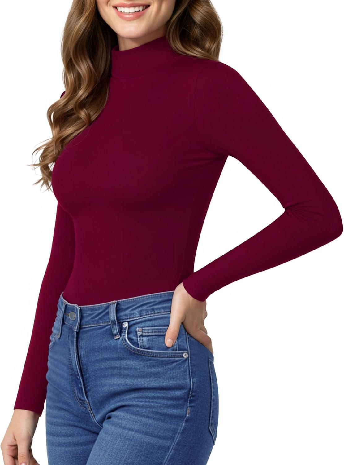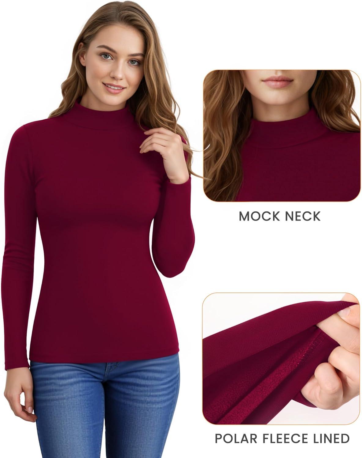 MANGOPOP Women's Mock Turtleneck Shirt Long Sleeve Thermal Polar Fleece Lined Basic Tops Going Out 2025 Trendy Wear(Burgundy)
