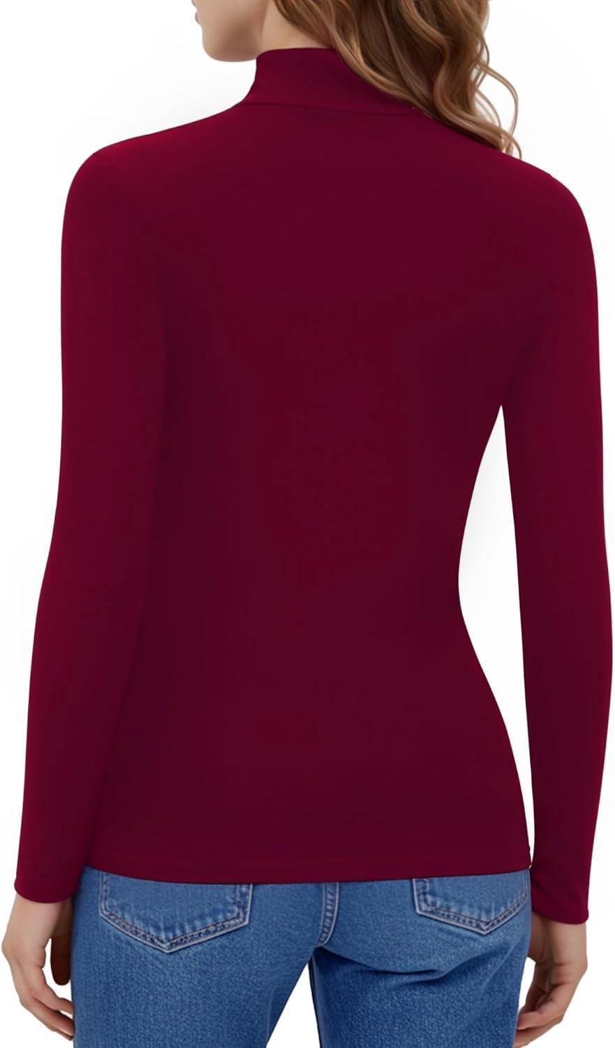 MANGOPOP Women’s Mock Turtleneck Shirt Long Sleeve Thermal Polar Fleece Lined Basic Tops Going Out 2025 Trendy Wear(Burgundy)