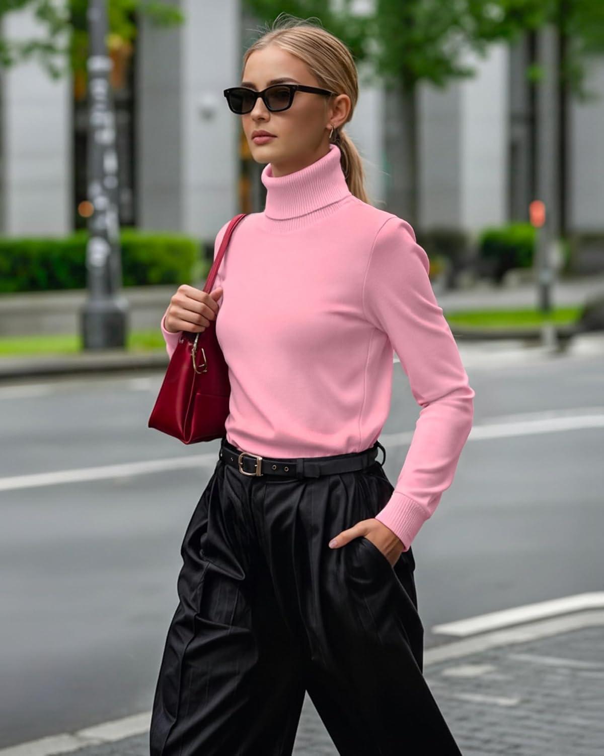 MANGOPOP Womens Turtleneck Sweaters Long Sleeve Ribbed Knit Sweater Casual 2025 Fall Fashion Winter Pullover Trendy Tops(Light Pink)