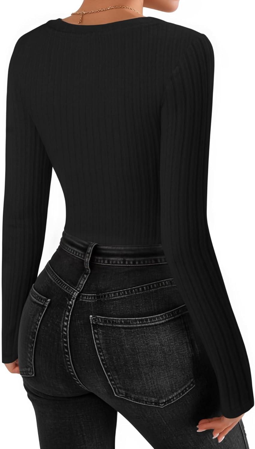 Be the first to review “MANGOPOP Women’s V Neck Long Sleeve Bodysuit Sweater Slim Fitted Body Suit Thermal Fleece Ribbed Knit Fall Tops 2025(01 Black)”
