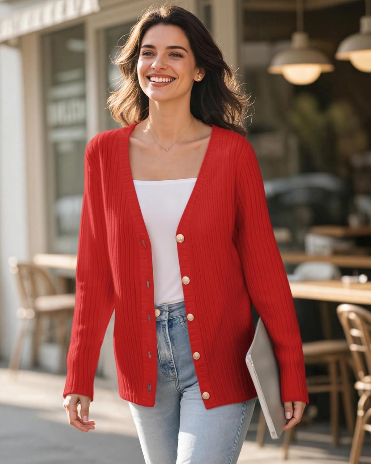 imageWomens Lightweight Cardigan Fall Cozy Cardigan Sweaters V Neck Ribbed Button Up 2025 TrendyRed