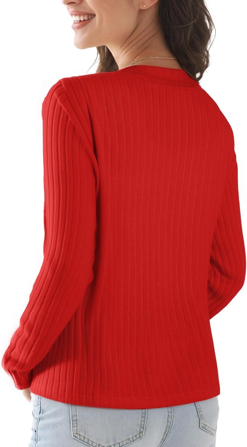 Women's Lightweight Cardigan Fall Cozy Cardigan Sweaters V Neck Ribbed Button Up 2025 Trendy(Red)